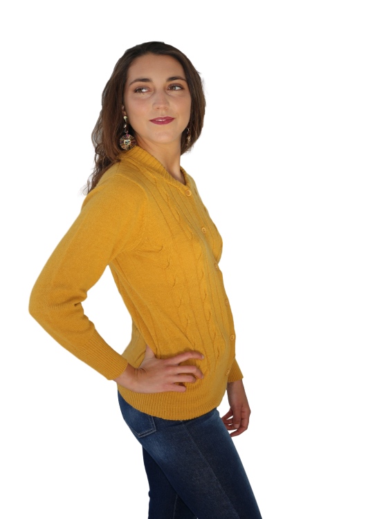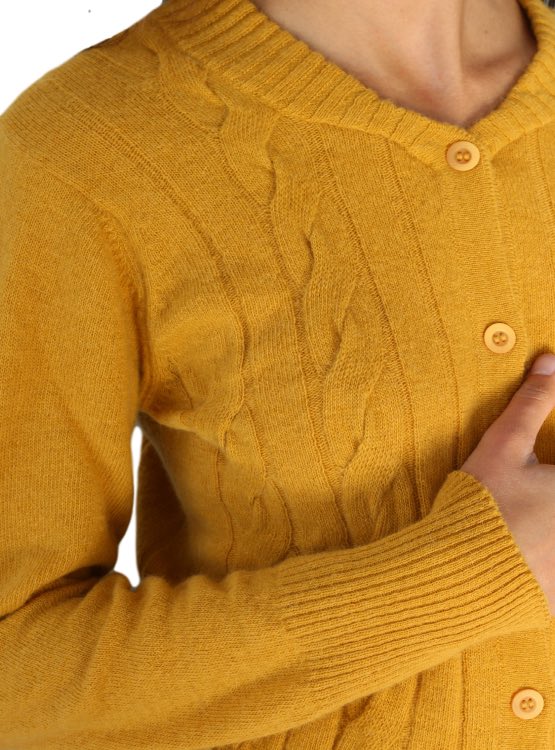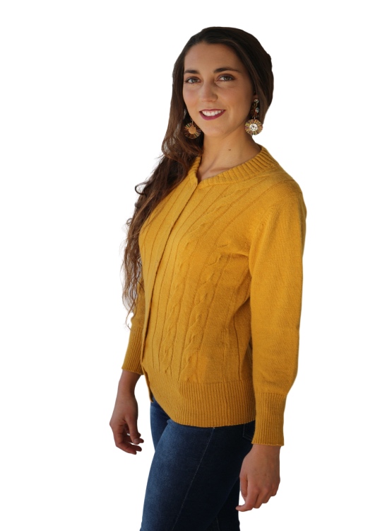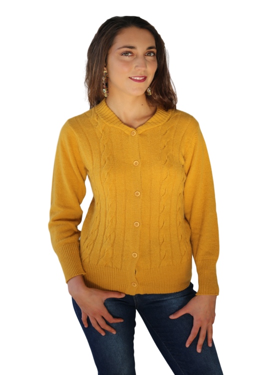 Chaleco de cachemira, abotonado con trenzas en la parte frontal. ideal para usarlo en días de frío con unos jeans rectos o pitillos o también un pantalón clásico.