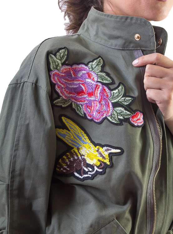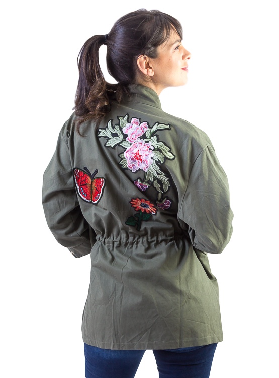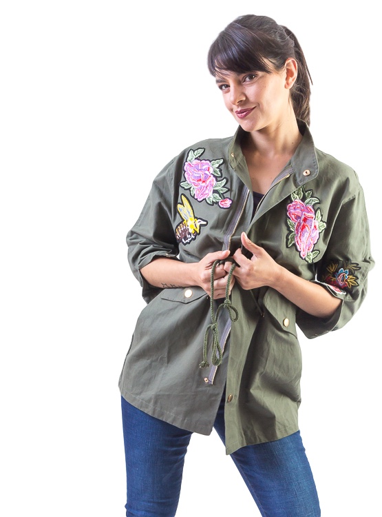 Chaqueta y mangas 3/4 bordada con cordón interior ajustable, bolsillos frontales en diagonal con broches a presión, cuello corte militar, cierre frontal con tapa. La puedes combinar con jeans pitillos, palazzos o rectos y unos botines o botas largas, dependiendo de la ocasión.