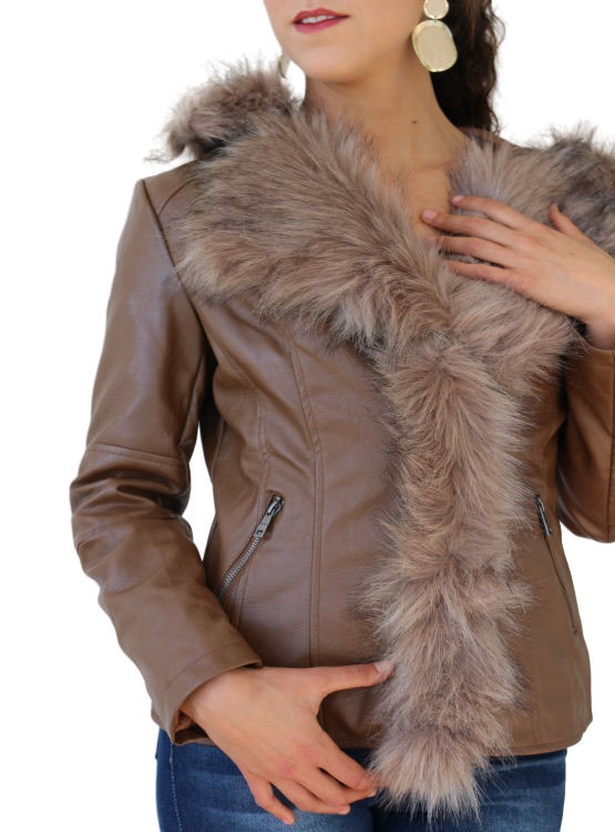 $95.000DESCRIPCIÓN: Chaqueta de cuero vegano, con piel sintética en el cuello y en la parte inferior, bolsillos de cierres laterales. Tiene cortes que permiten modelar muy bien la cintura, ideal para usarla con jeans, o cualquier tipo de pantalón o falda tubo, según la ocasión. INFORMACIÓN DE TALLAS: M: 49 cm de espalda, 65 cm de largo. L: 52 cm de espalda, 65 cm de largo. XL: 53 cm de espalda, 65 cm de largo. COMPOSICIÓN: Material Exterior: 100% Poliuretano. tejido Base: 90% Viscosa, 10% Poliéster. Pelaje Sintético: 72% Acrílico, 17% Modacrílico y 11% Poliéster. Forro: 100% Poliéster. CUIDADOS: Para lavar, limpiar con trapo húmedo. No usar blanqueador. Secar colgada. No planchar.
