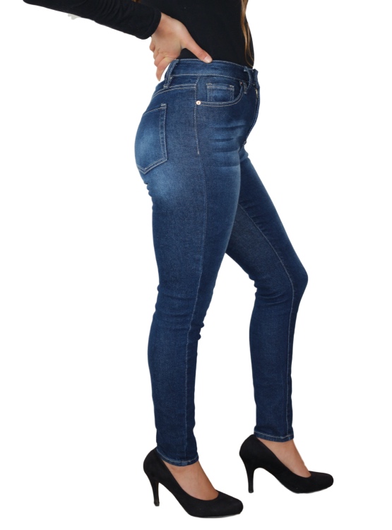 Jeans que forma una silueta para cualquier tipo de cuerpo. Ésta apariencia de mezclilla rígida mezclada con elastano, te darán esa sensación de mezclilla vintage perfectamente envejecida de tus sueños. Jeans de tiro alto, con 5 bolsillos, cierre de un sólo botón, ajuste súper alto y trabas para el cinturón.