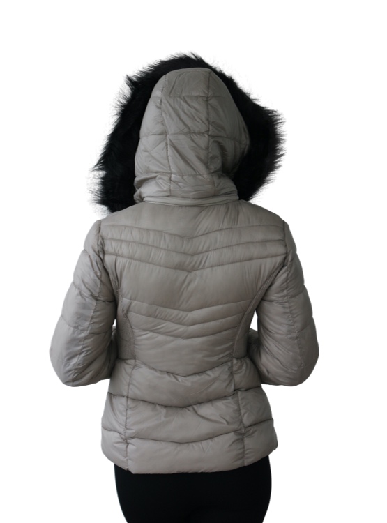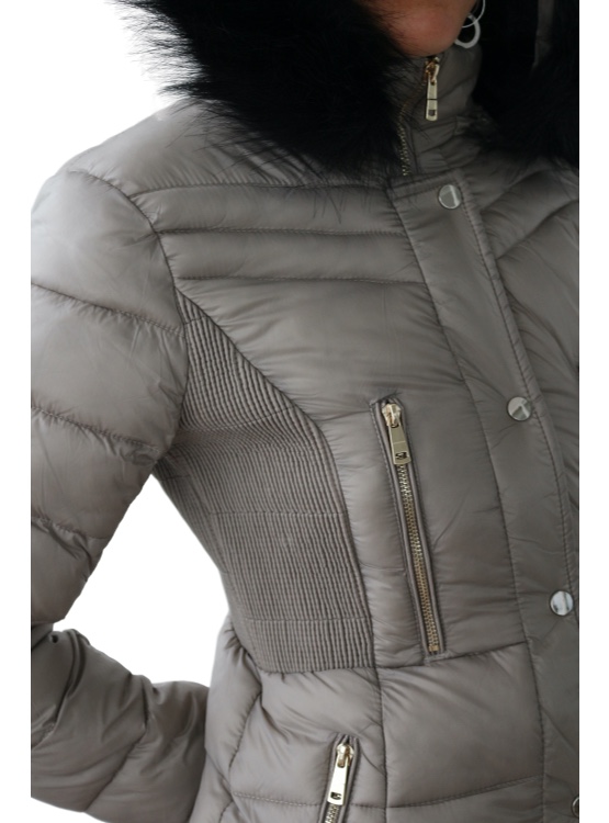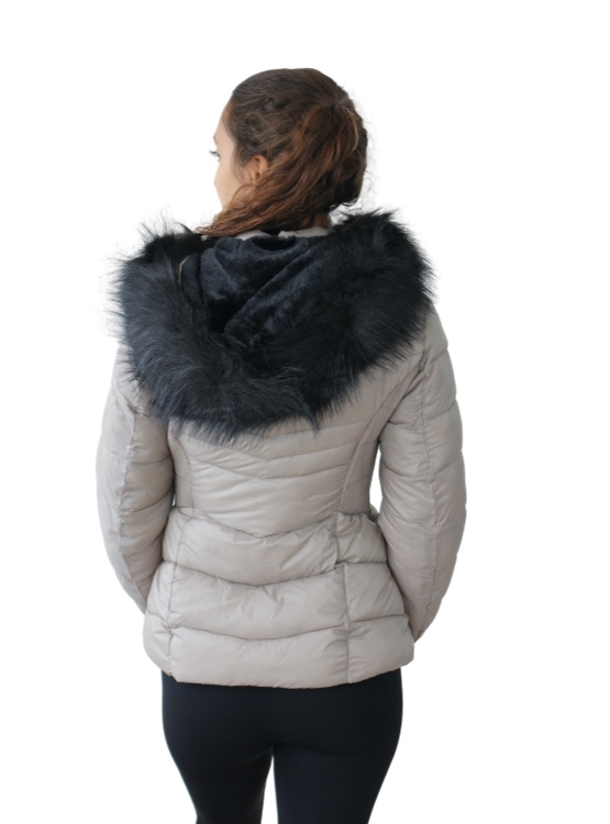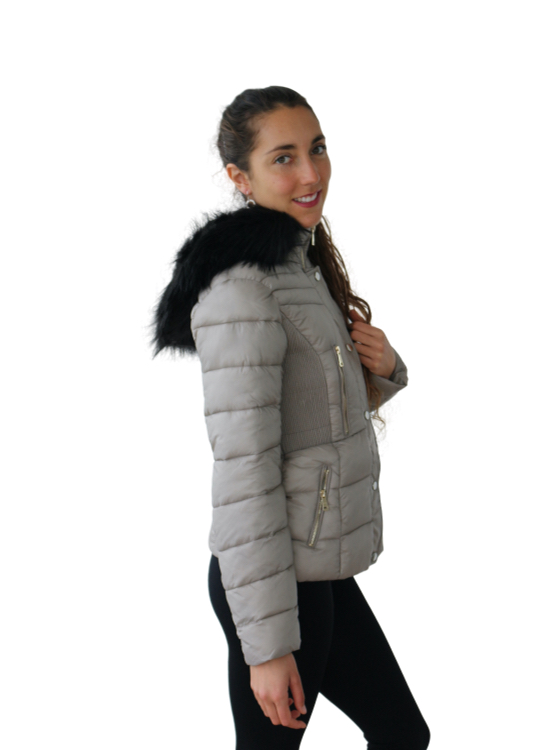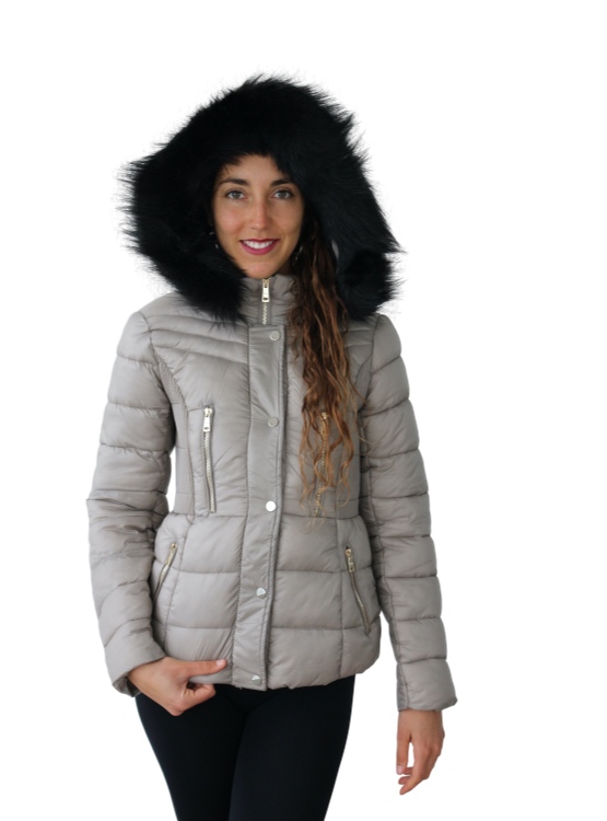 Parka con cierre central cubierto con broches a presión, tiene un elástico en los costados que permite adaptarse al cuerpo. Su capucha y piel sintética son desmontables, lo cual te permite usar la parka con gorro y sin la piel. Es muy versátil y permite usarla con jeans corte recto o pitillo, pantalones negros o también una calza.